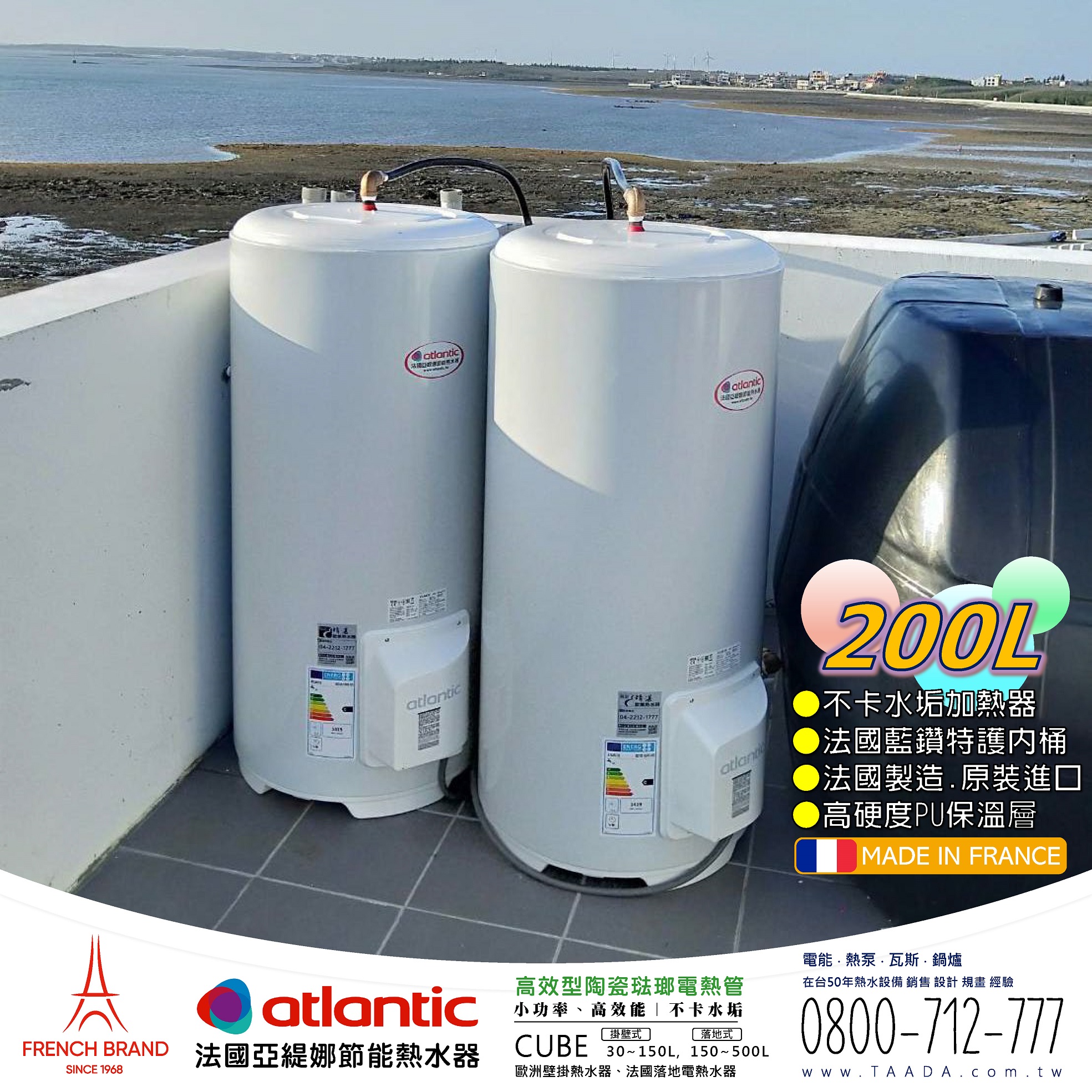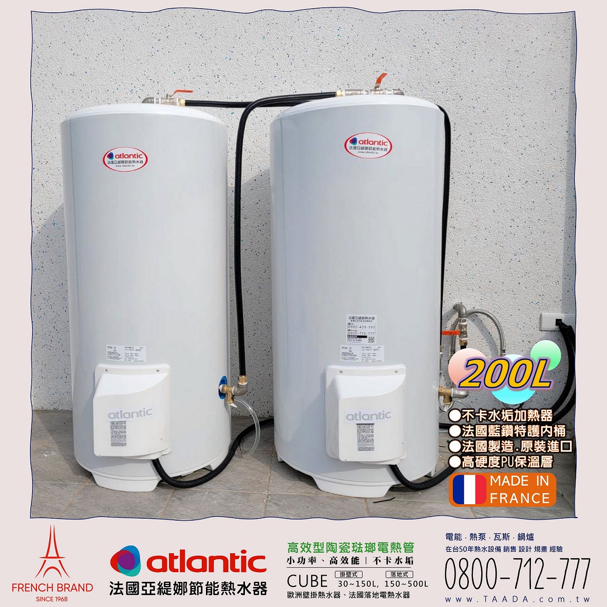 法國亞緹娜落地式電能熱水器-法國製造原裝進口,從150公升到500公升產品齊全,僅需用電約11安培,就可讓全家人有溫暖的熱水,特殊高密度PU發泡保溫材質,讓您有暖心又省錢,亞緹娜是您最好的選擇。