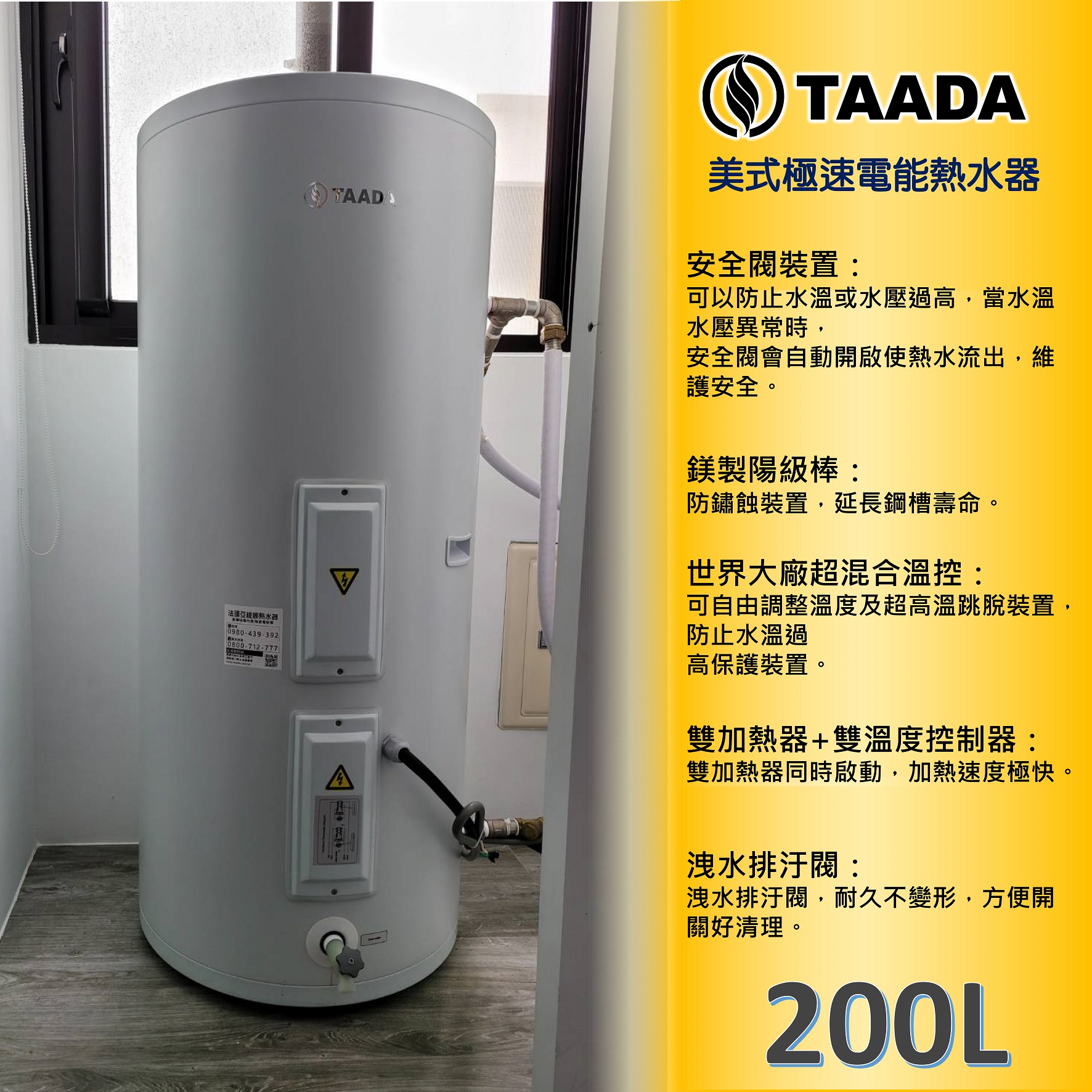 TAADA極速鍋爐使用6分進出水口,可同時使用多點熱水供應,不用擔心源頭供水不,忽冷忽熱問題也可得到緩解。